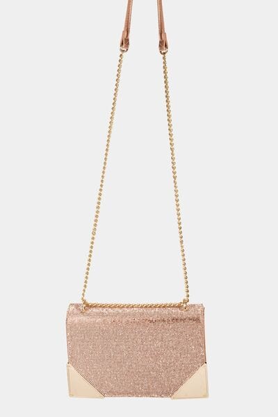 Add some edge to your wardrobe, this bag adds a distinctive rhinestone studded rectangle design. Perfect for adding a touch of glamour and sophistication to any outfit, this accessory is a must-have.