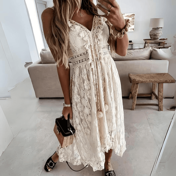 Introducing the Margaret™ - Elegant Boho Dress, a beautifully crafted piece that combines delicate lace detailing with a relaxed, bohemian vibe. Perfect for both casual outings and special occasions, this dress offers an air of elegance with a touch of carefree charm.