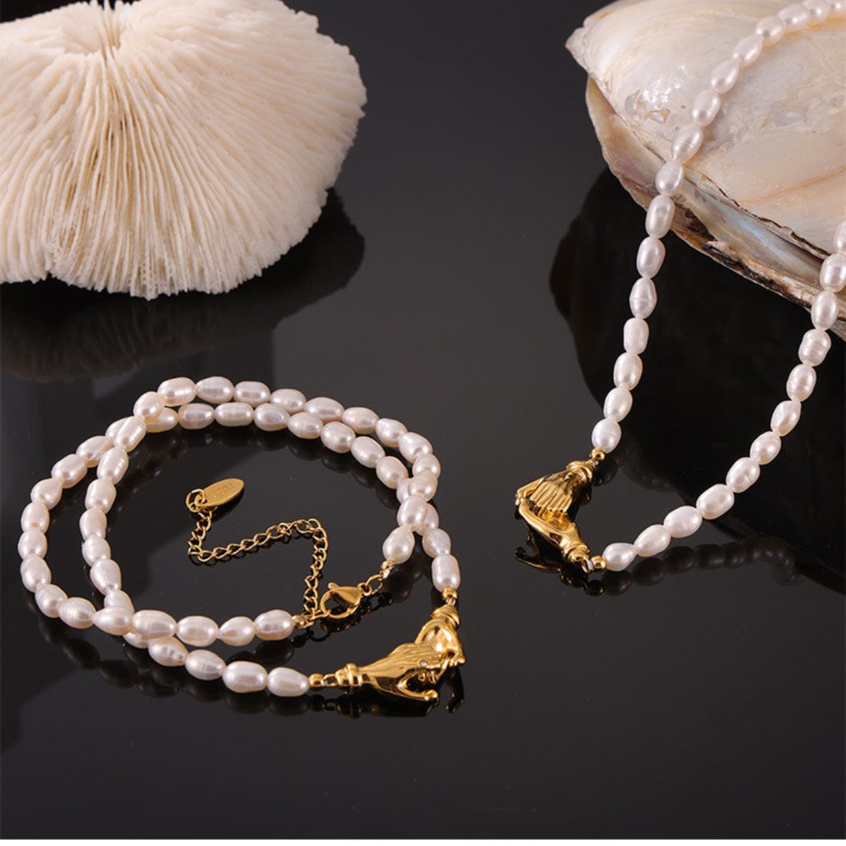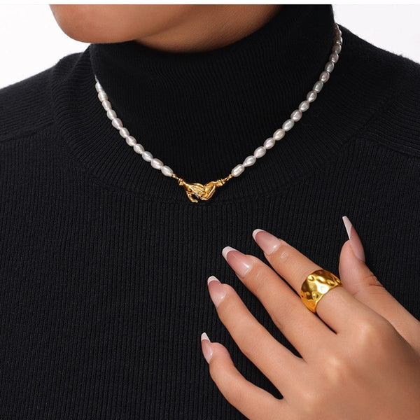 Description:This elegant 1-piece freshwater pearl necklace is a perfect accessory for any occasion, featuring a luxurious 18K gold-plated and Titanium steel design that exudes sophistication and glamour.