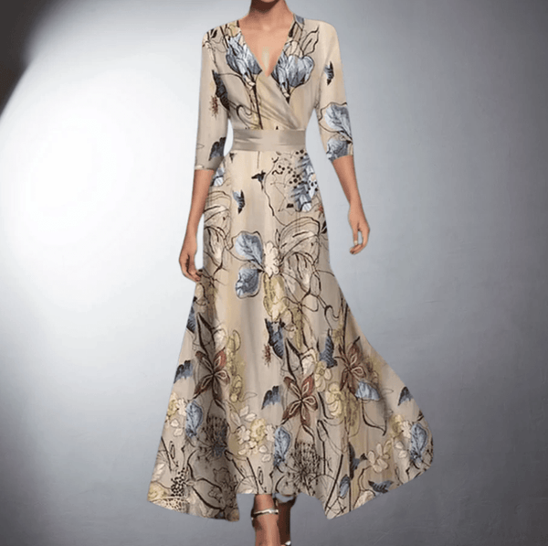 ELEVATE YOUR WARDROBE WITH THE ZOE - CLASSIC FLORAL V-NECK MAXI DRESS!