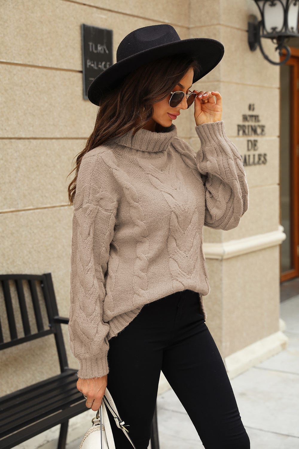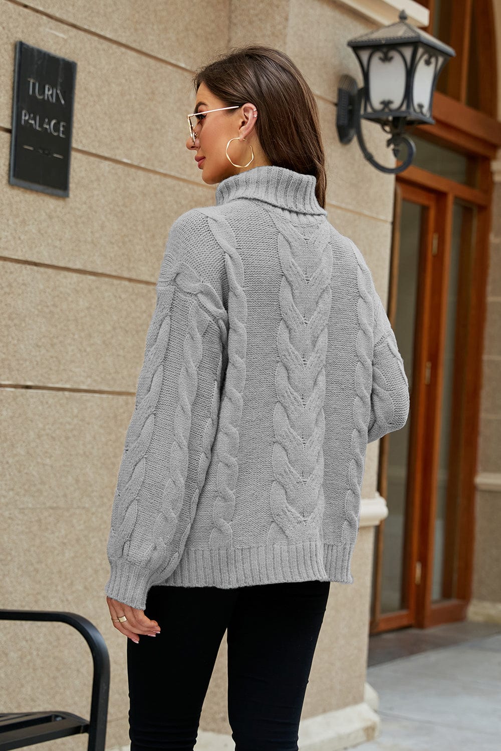 - Features: Cable-knit