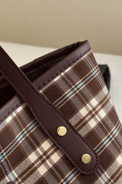 Karierte Tragetasche aus PU-Leder