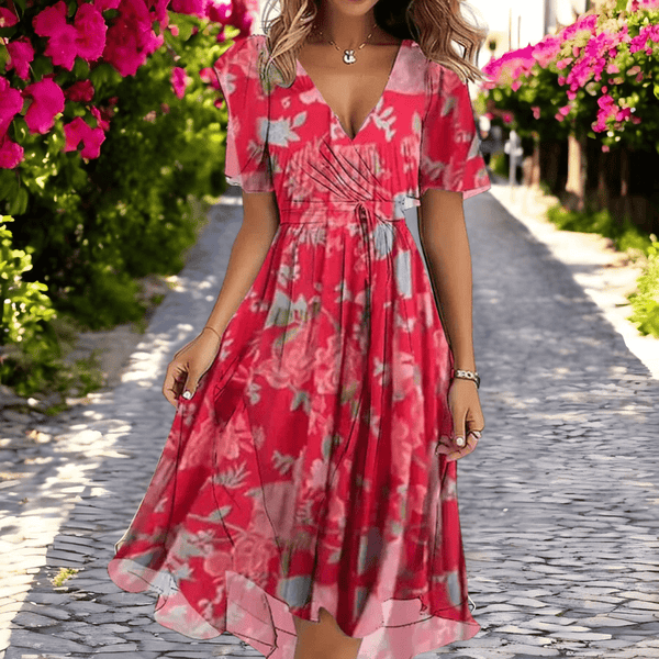 Rosalind - Floral Loose-Fit Deep V-Neck Dress