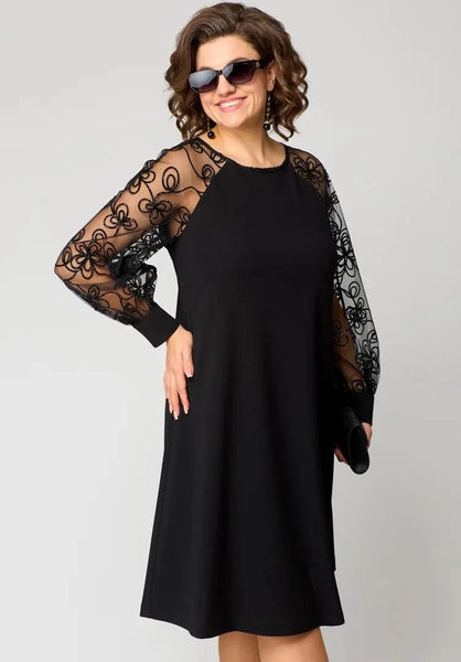 Introducing the Elara Lace Sleeve Midi Dress, where timeless sophistication meets contemporary charm. With its delicate lace sleeves and flowing design, this dress is your go-to piece for any formal event or celebration.