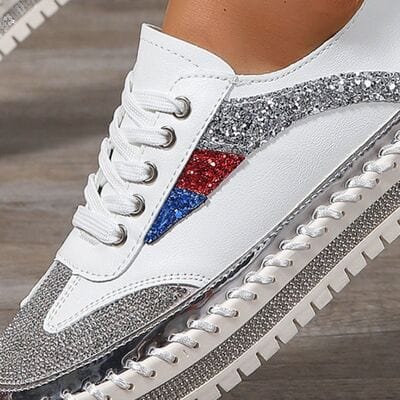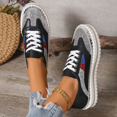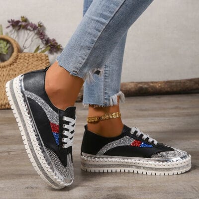 Rhinestone Lace Up Round Toe Platform Sneakers