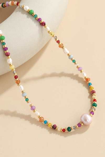 Description:This elegant necklace features a stunning combination of beads, crystals, and freshwater pearls, perfect for adding a touch of sophistication to any outfit.