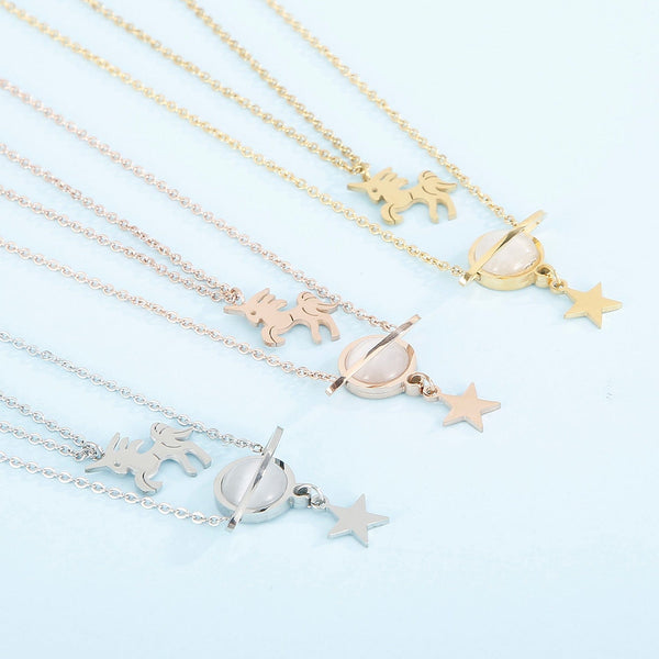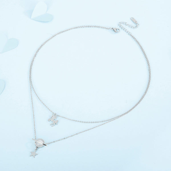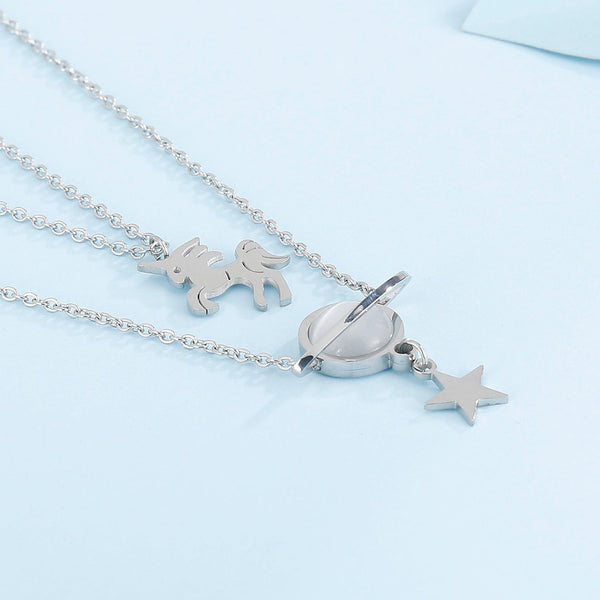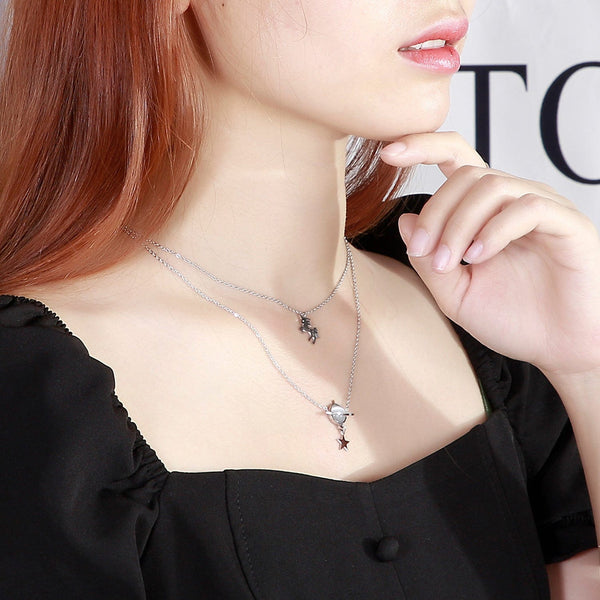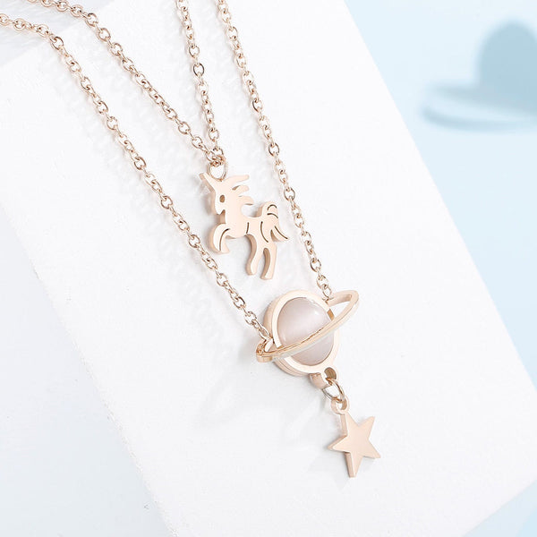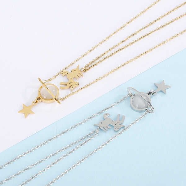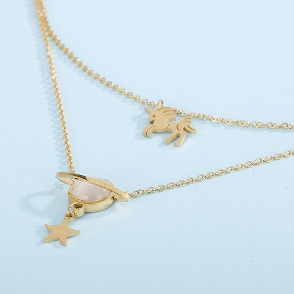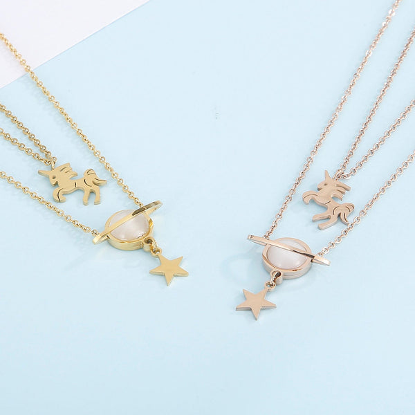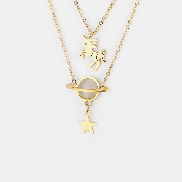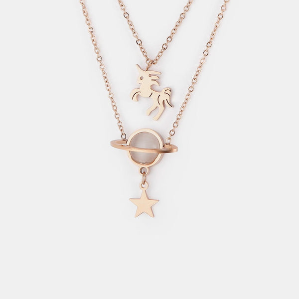 Unicorn and Star Shape Double-Layered Pendant Necklace